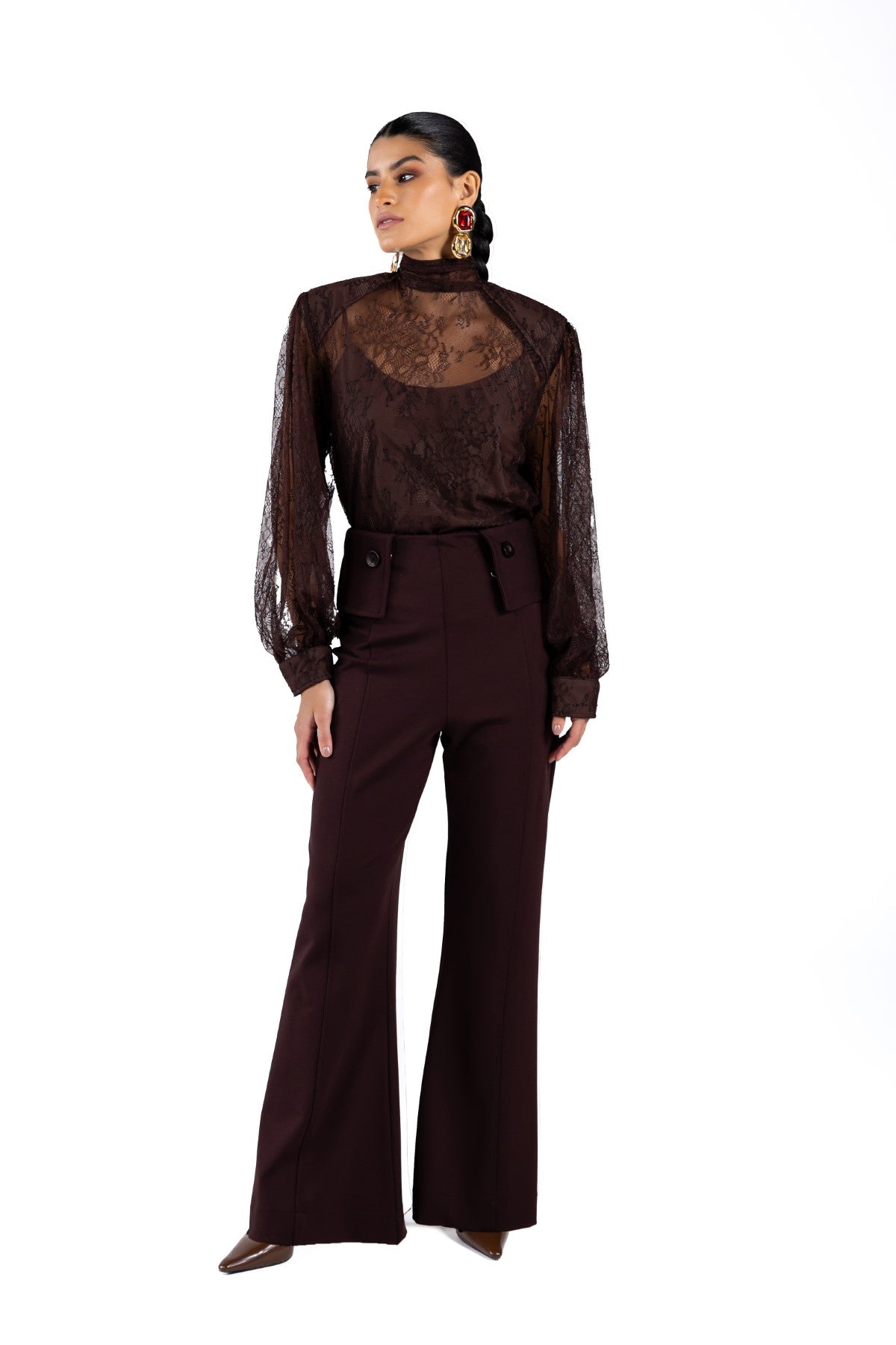 Calça Flare Malha Marrom Anne Fernandes – Moça Bonita Boutique