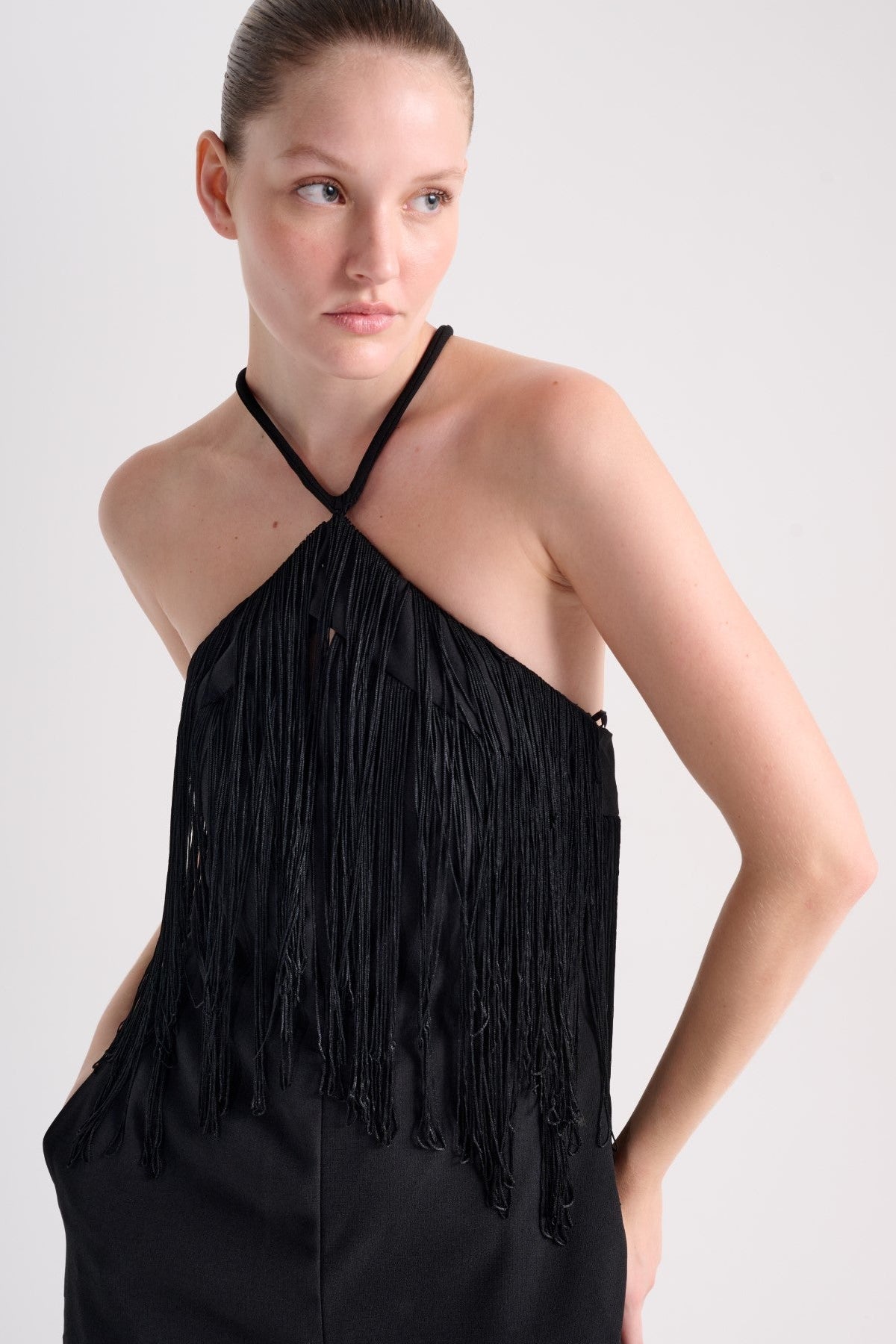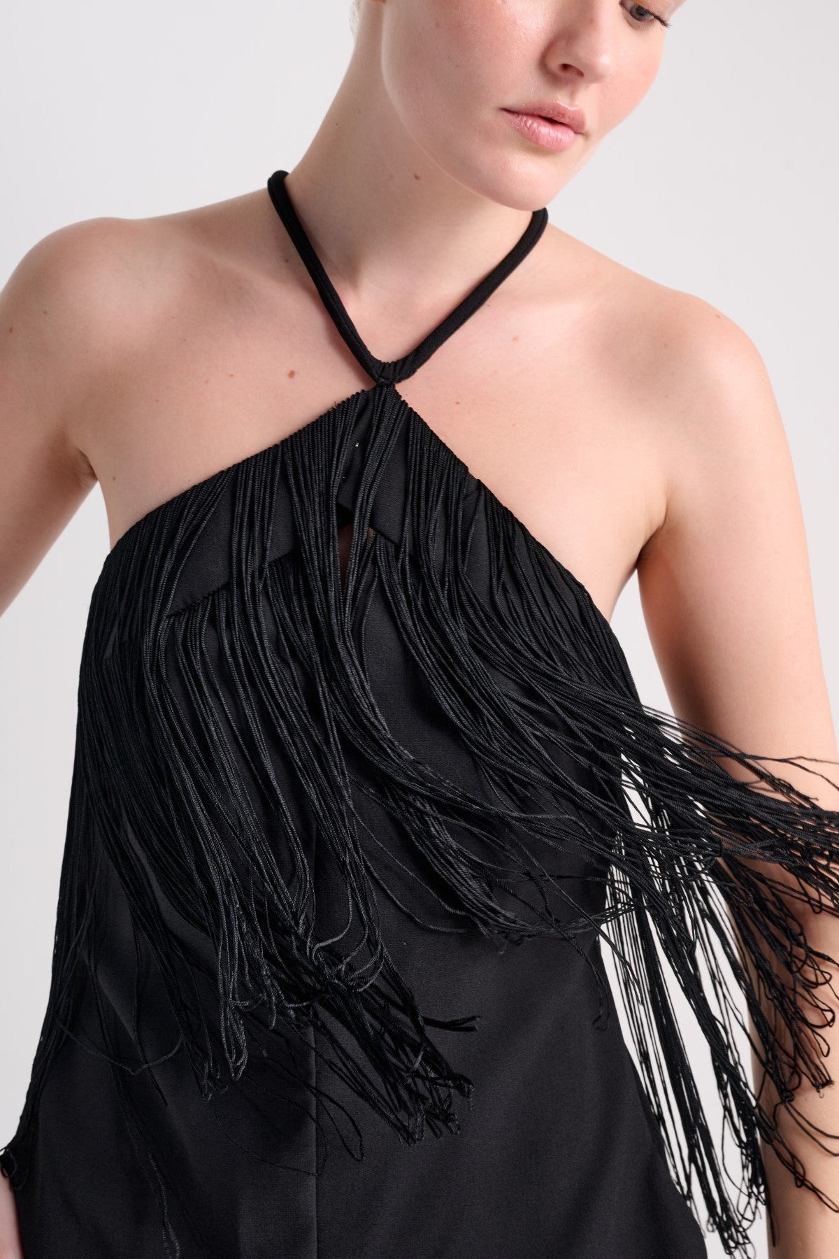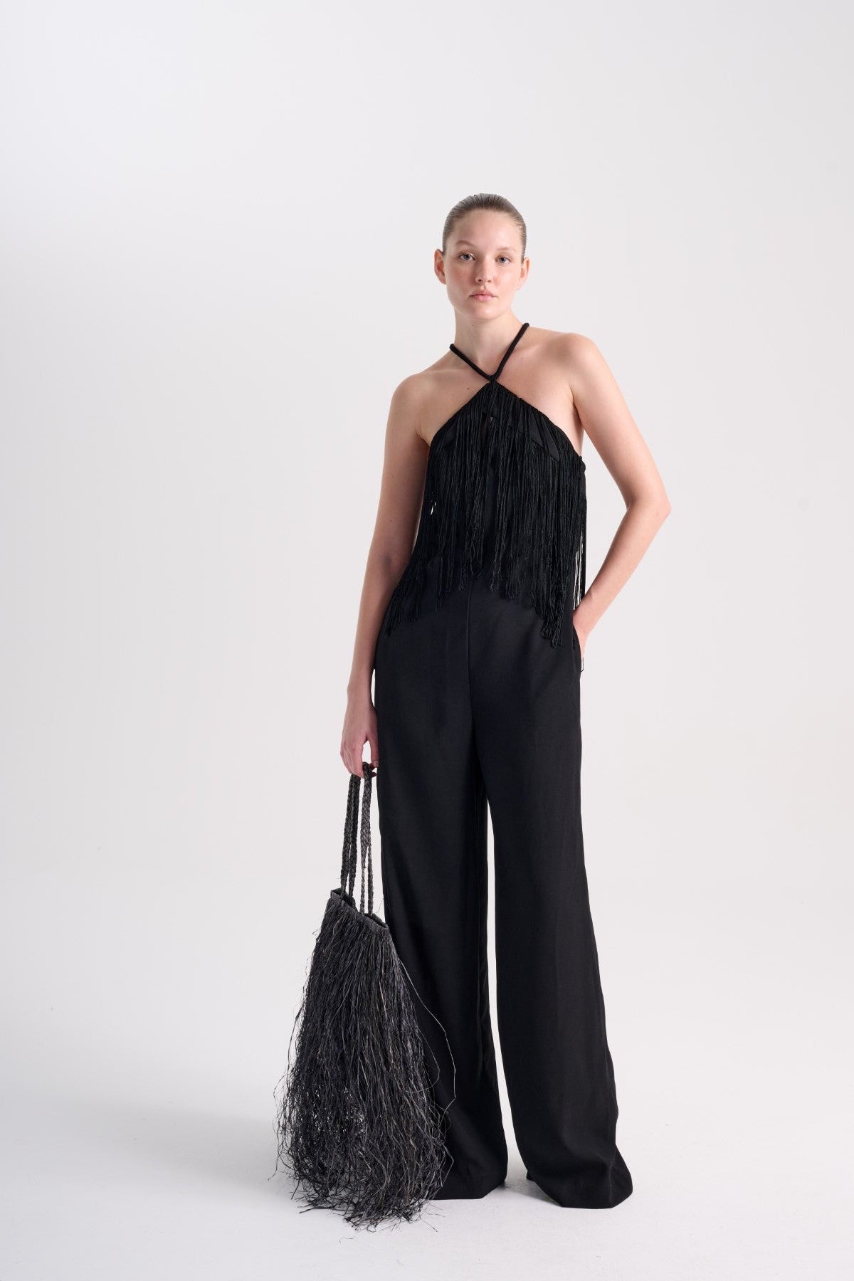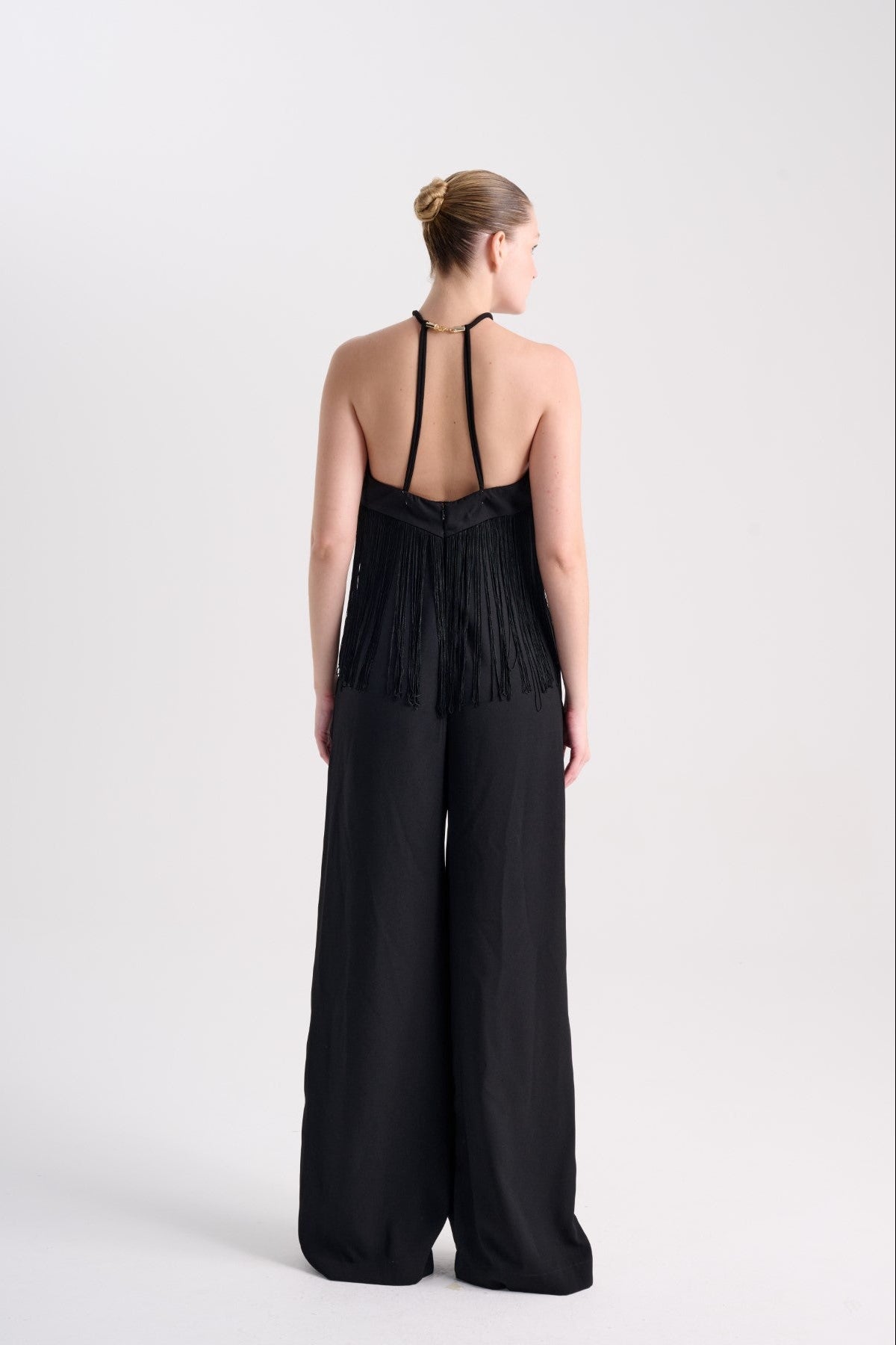 Macacão Decote com Franja Preto Alphorria – Moça Bonita Boutique